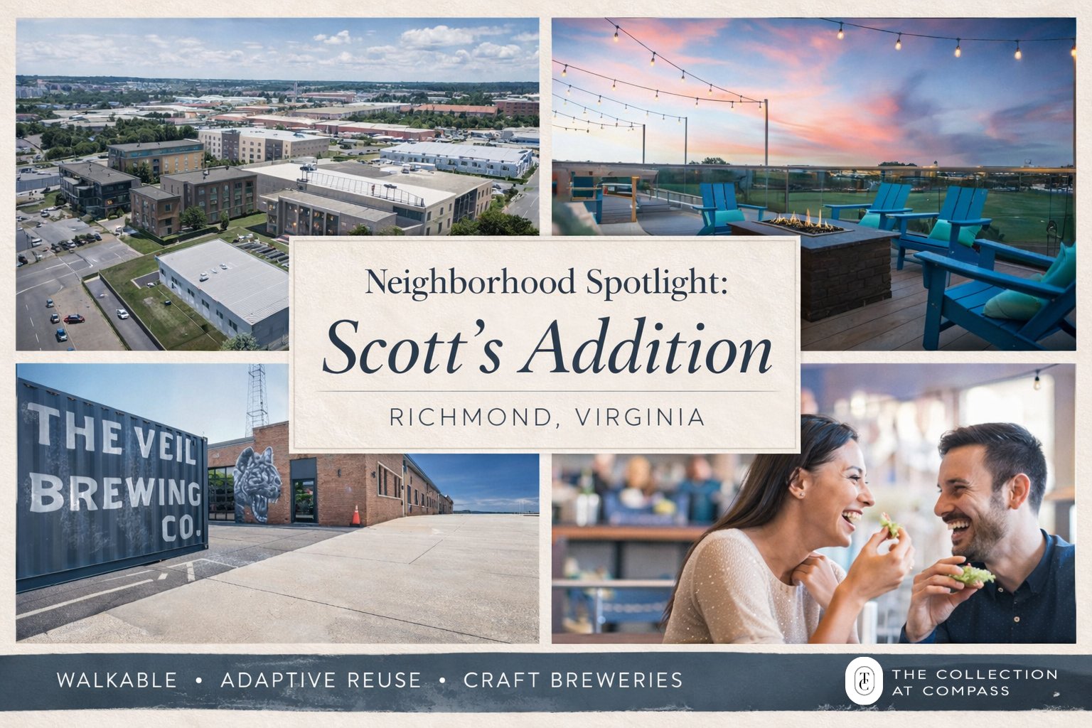 Scott’s Addition: Often described as the heartbeat of Richmond’s recent renaissance, Scott’s Addition blends historic industrial character with vibrant modern energy. What was once a 1930s light industrial hub has transformed into one of the city’s most dynamic neighborhoods, where former warehouses now house stylish apartments, art spaces, breweries, rooftop patios, and some of Richmond’s most celebrated restaurants. Walkable, creative, and constantly evolving, Scott’s Addition offers a lifestyle that feels both connected and distinctly its own — a place where history, community, and growth intersect in meaningful ways.